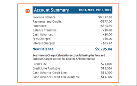 Account Summary – Lists your previous balance, payments made, new charges, interest, and the current balance.